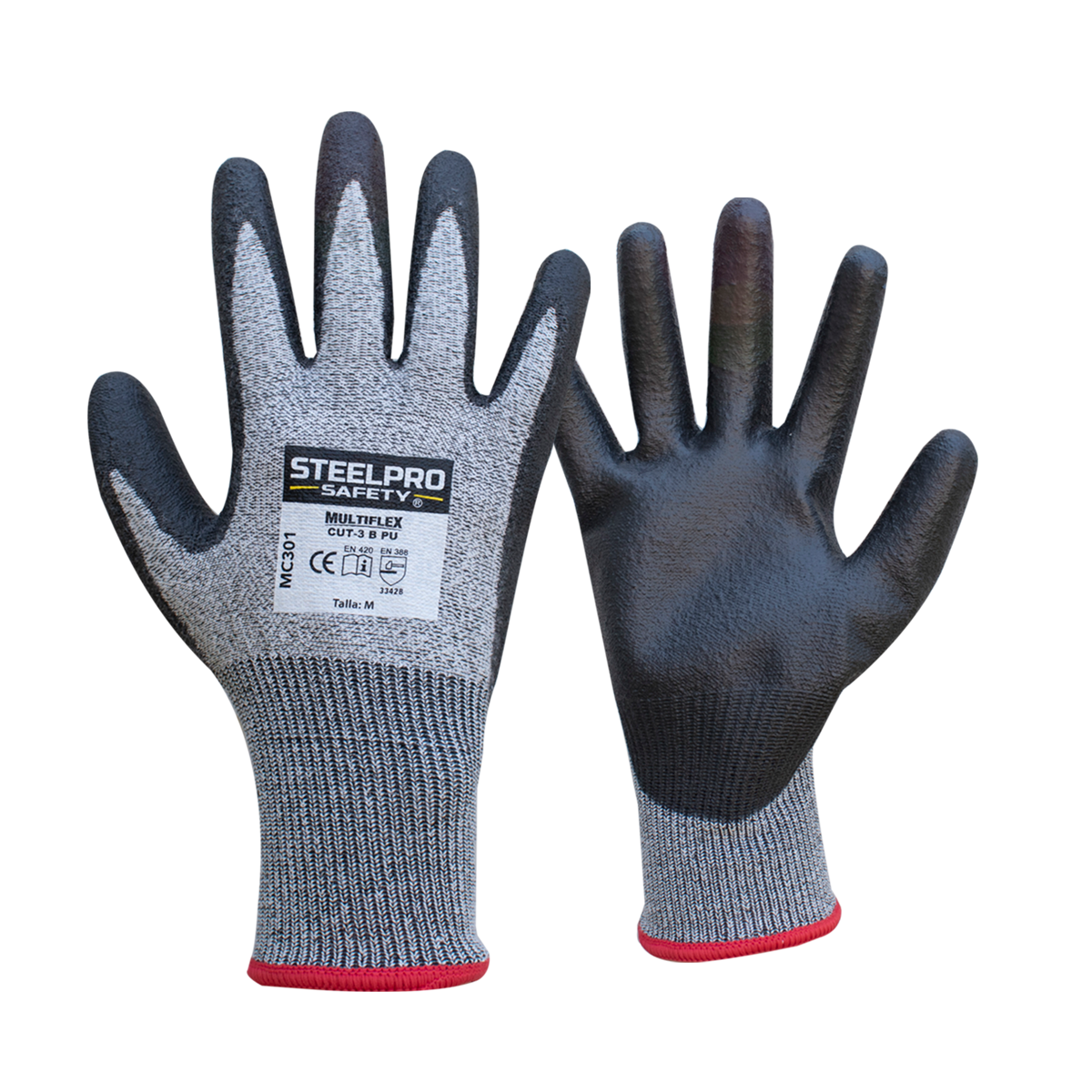 Palma y falanges distales con recubrimiento en PU (Poliuretano) negro.,